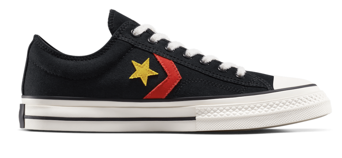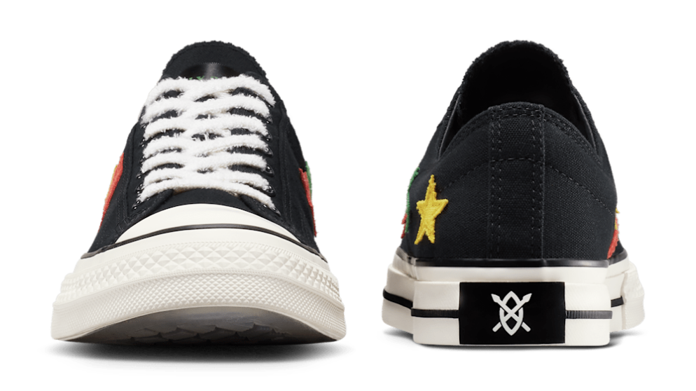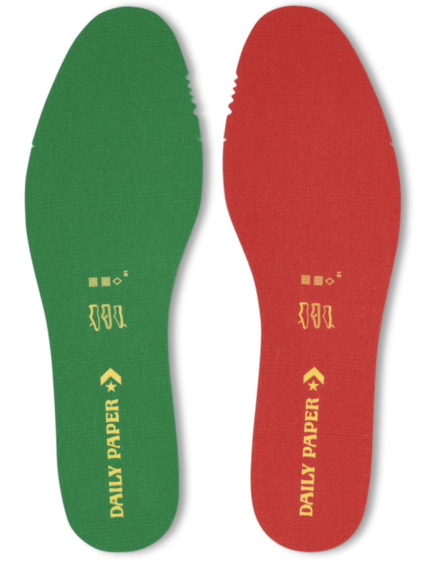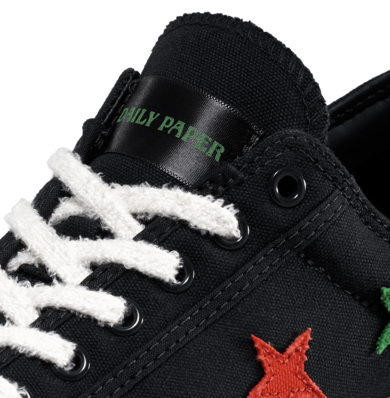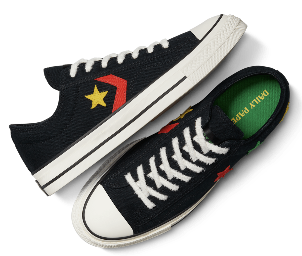 Converse x Daily Paper Star Player 76 editions comes with additional pair of black laces, green-red insoles with Converse x Daily Paper branding on the midsoles and on the tongue.